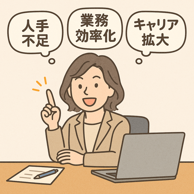とはいえ、このまま放置するのはやはり問題である。ここは発想を変えて、慢性的な人手不足だからこそ期待できるメリットを考えてみてはどうだろうか? 事例を挙げながら整理してみよう。
